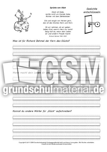 Gedichte Entschlusseln Spruche Vom Gluck Gedichte Entschlusseln Gedichte Werkstatt Empathie Werteerziehung Mobbing Beleidigungen Themen Und Projekte Hus Klasse 3 Grundschulmaterial De